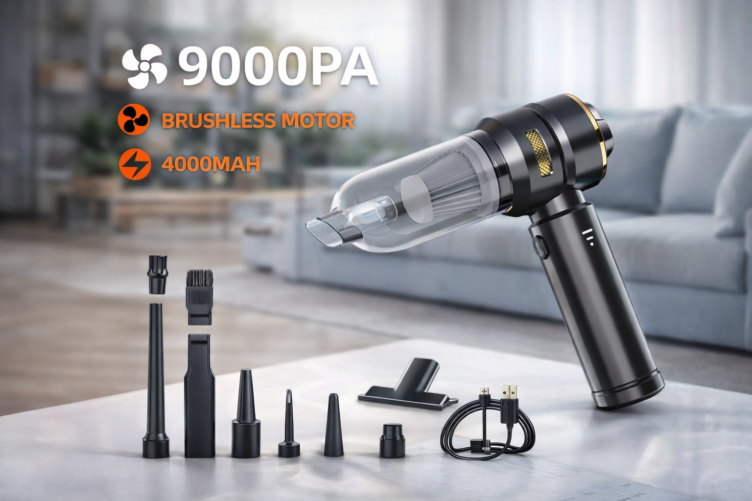 | W zestawie | Odkurzacz, 5 końcówek, kabel USB-C, szczotka czyszcząca, instrukcja |